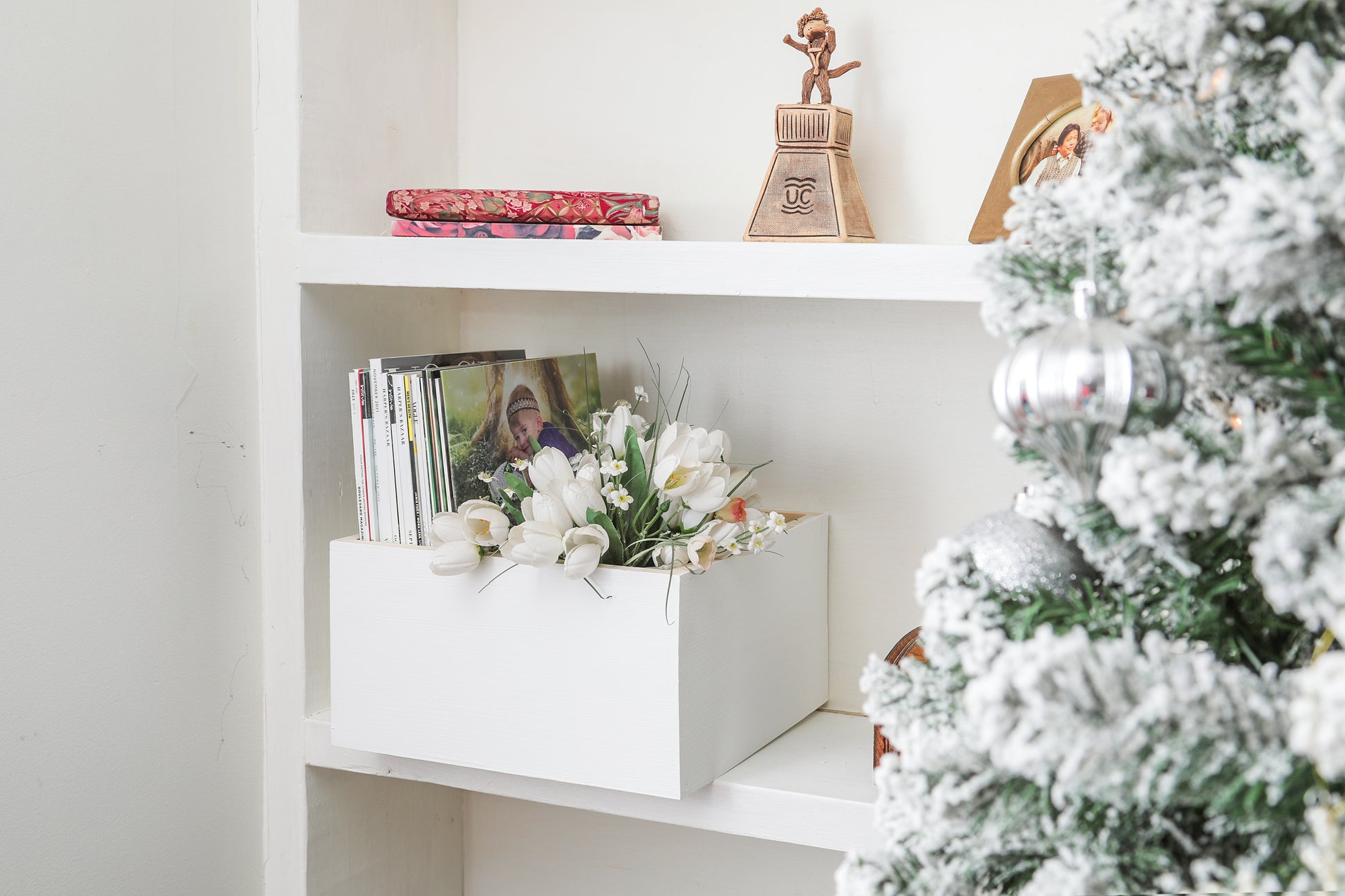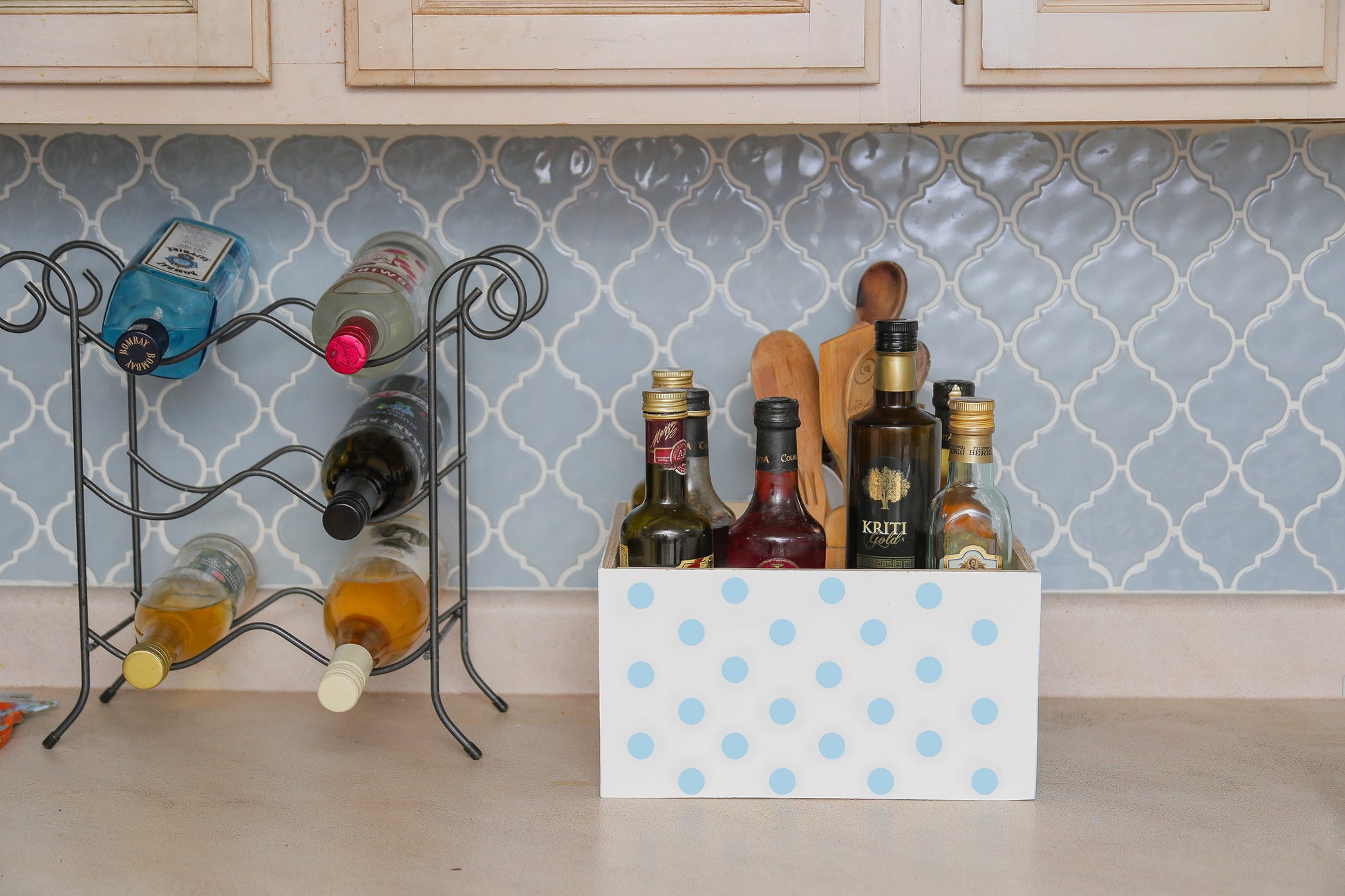 this simple open wooden box is perfect for your shelfs. primed white, it's ready for decoration and personalization with stickers, paint, and any other art work to make it your own. use it to store bottles on your kitchen counter, toys in your kids' room or game pieces in your living room. made of sturdy sanded plywood, it will last through years of use.
